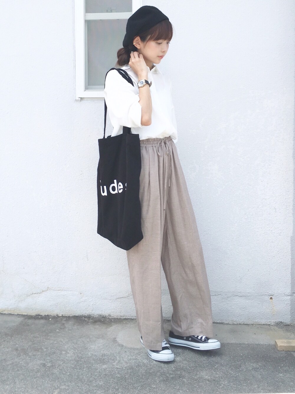 ゆる〜いチェックパンツがお気に入りです。 荷物が多い日にこのでっかいトートを使っています👏🏻 いつも見て下さりありがとうございます🙇✨ Instagram @mai_a_wear