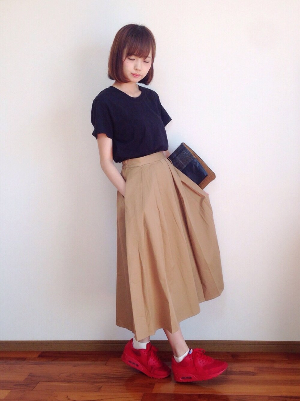 スカートにスニーカーを合わせたい気分でした👟👟 去年に買ったクラッチを久しぶりに持ちました😳😳 いつもいいね、SAVE、コメント、フォローもありがとうございます🙏✨ コメントを返すのが遅くなっていてごめんなさい🙇🙇