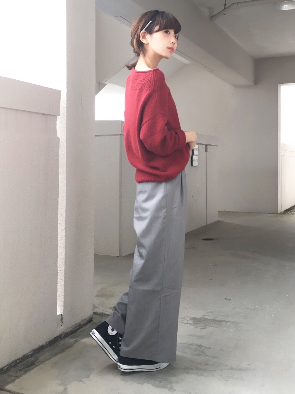 予約していたグレーのパンツが届いたので早速履いてみました👖 赤とグレーを合わせてみましたが、シンプルすぎて寂しかったのでパールのヘアアクセサリーをつけました🙆🏻🙆🏻 いつも見てくださって本当にありがとうございます🙇✨