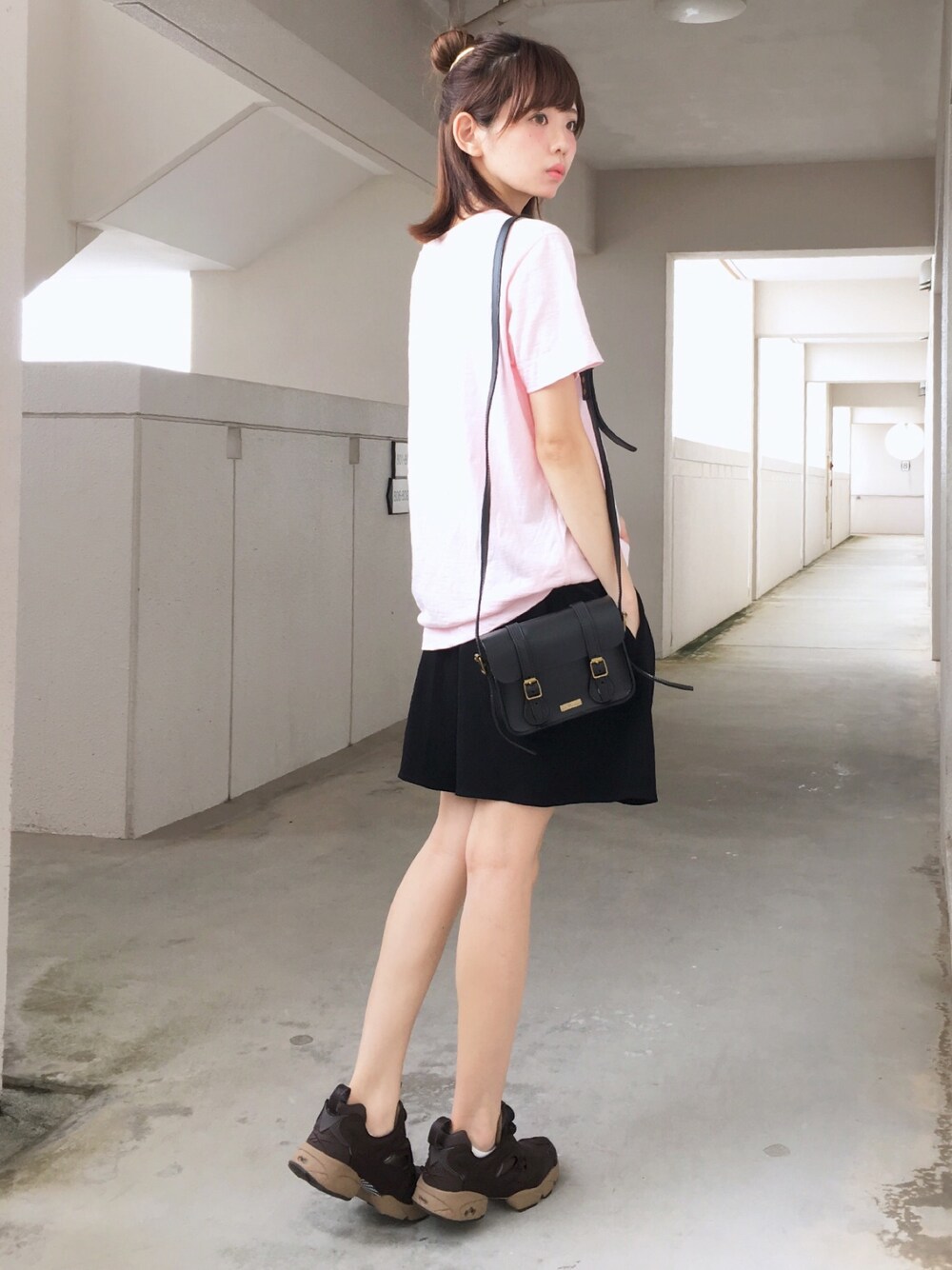 ピンクのTシャツに茶色のアイテムを合わせるのがマイブームになっています🙆🏻🙆🏻✨ この日はReebokと合わせていました。 髪は久しぶりに外はねにセットして、半分おだんごにしてコームをさしました👏🏻 いつも見て下さり本当にありがとうございます🙇👏🏻❤️