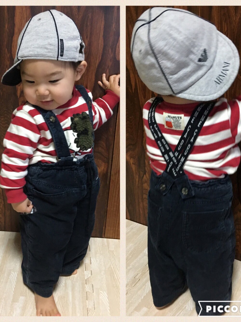 お家、お庭コーデ❤︎ コーデュロイの太めパンツで作業着風に❤︎ 裏起毛のスヌーピートップスで裸足でも暖かく❤︎ もー、動き回って大変っ。。。 バックスタイルが大好きなこのコーデ❤︎