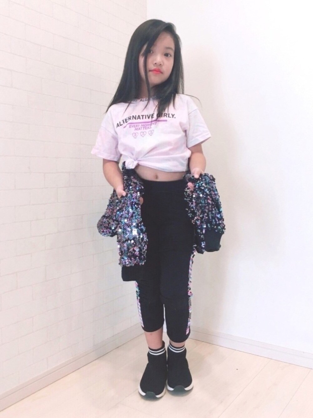 母の本業が忙しくなかなかコーディネートを撮影出来なくやっと撮れました‼︎ 最近NiziUに憧れてる娘♡ ダンス練習コーデとのことですっ♡♡♡