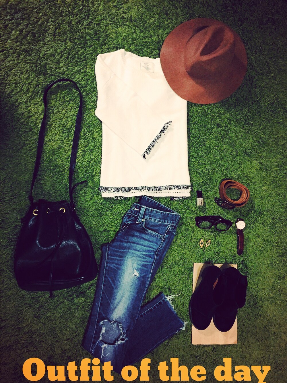 いいね、save、フォローありがとうございます😚 今日はungridのフリンジニットを主役に 履き込んだクラッシュデニムを合わせて(*^^*)