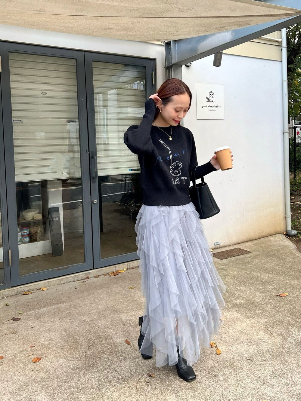 ARTなニットはフリルスカートと合わせました🩵 リップはナチュラルなツヤ感♡ Instagram▶︎maipipii