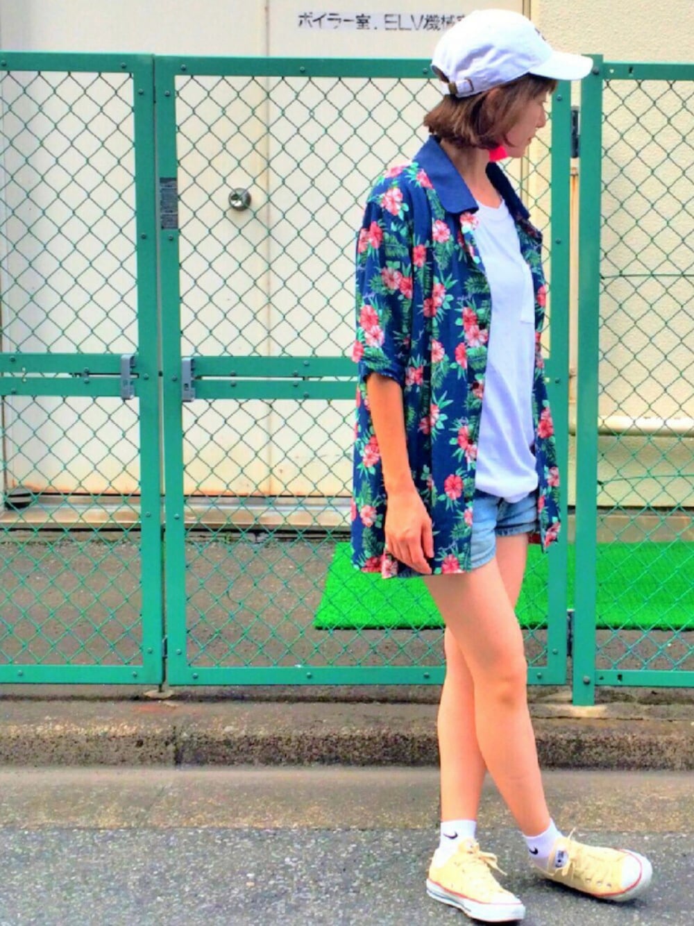 ずっと着たかったSubcietyのアロハシャツを着てみた。 今年初のショートパンツと合わせて。 PLSTの白TシャツはZOZOフリマでゲトりました。 ハンドメイドのピンクのタッセルピアスと相性ばつぐん♡