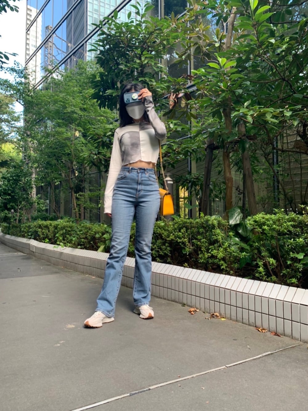 韓国アイドルのoff day風コーデww ハイウエストで脚長にみせるために 上もショート丈にしてみた😊