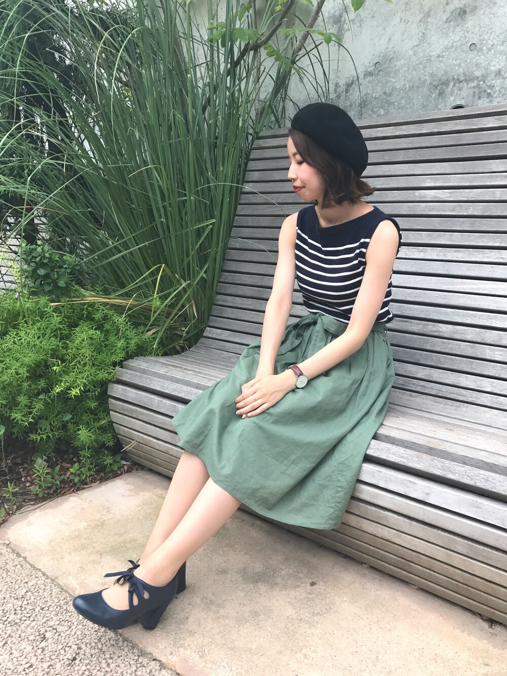 古着のボーダーニットにF i.n.tのカーキ色スカートを合わせました♬ 麻素材なのでこの時期かなり活躍しております♡(^^) ・・・・・・・・・・・ Instagramのんびり更新してます follow me♡ ➡︎@shimuramai 🌻🌿