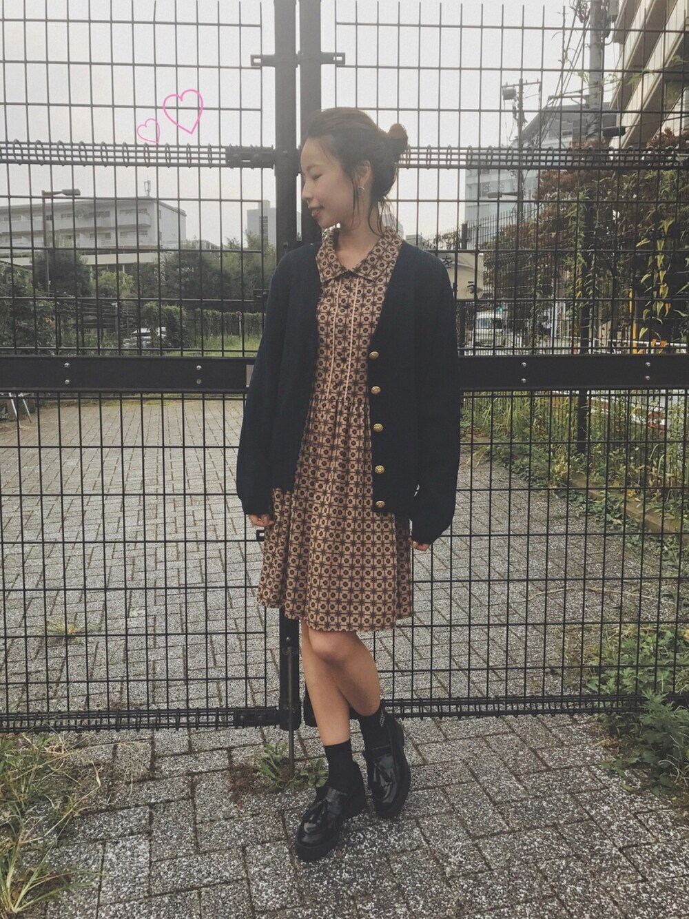 お気に入りの古着のワンピース♡ ざっくりカーデを羽織って、ちょっと秋らしく…!