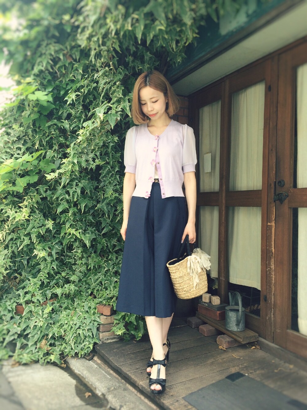 いつもグリーンやブルーを選びがちな私ですが、今回は珍しくピンクのカーディガンをGETしました♡ ピンクを着ると、自然といつもより女の子らしくしなきゃ!と背筋が伸びる気がします(u.u)♡ 今日はピンク色を引き立てるように、ネイビーやブラックで統一しました。