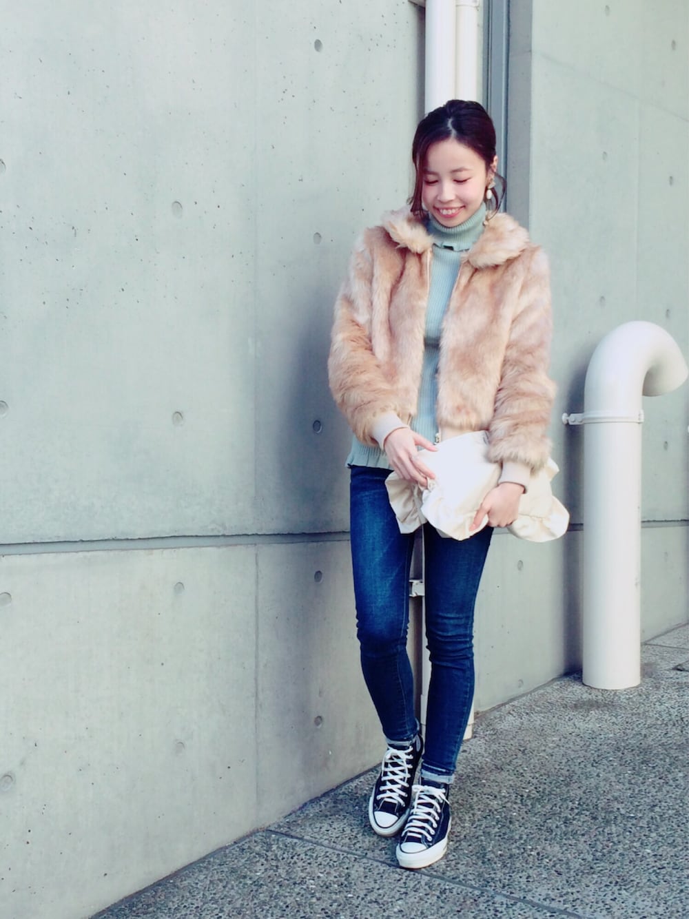 ファーブルゾンが主役♡ 袖やウエストリブが太めなので、カジュアルなデニムとの相性も抜群でした(*^^*) ほんとに温かくて手放せません笑