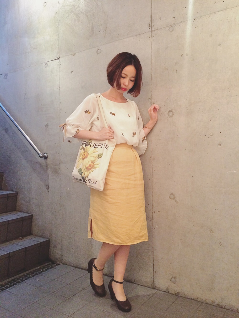 黄色に目がありません( ´ ▽ ` )ノ♡ プチローズ刺繍のブラウスは、着てるだけであがる大好きな1枚です♫