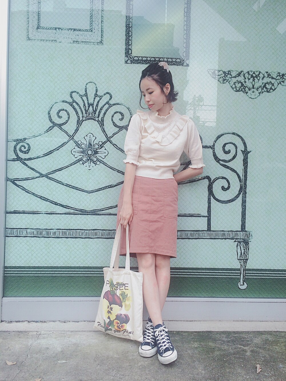 _m_a_i_のニット/セーター「フリル使い5分袖ニットプルオーバー/F i.n.t」を使ったコーディネート