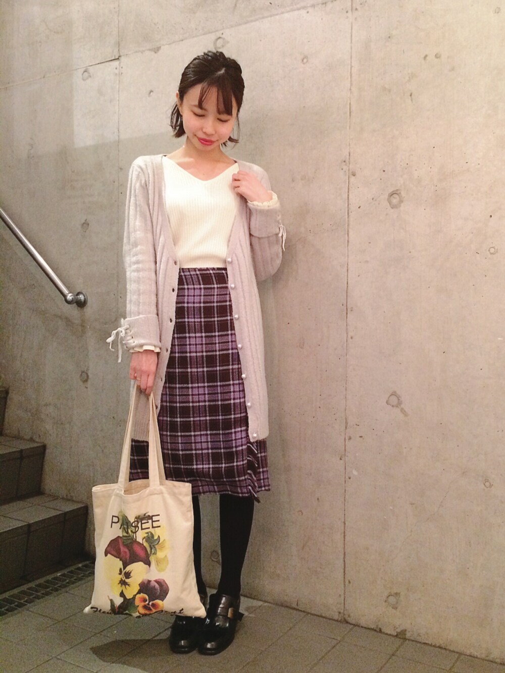 _m_a_i_のカーディガン/ボレロ「袖口レースアップリブニットロングカーディガン/F&A」を使ったコーディネート