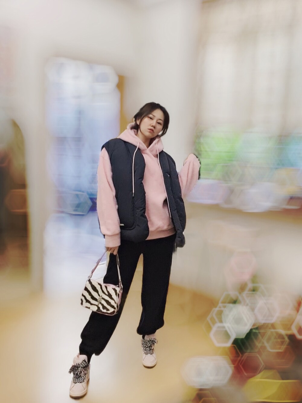 お邪魔します京都のパーカーを使ったコーディネート