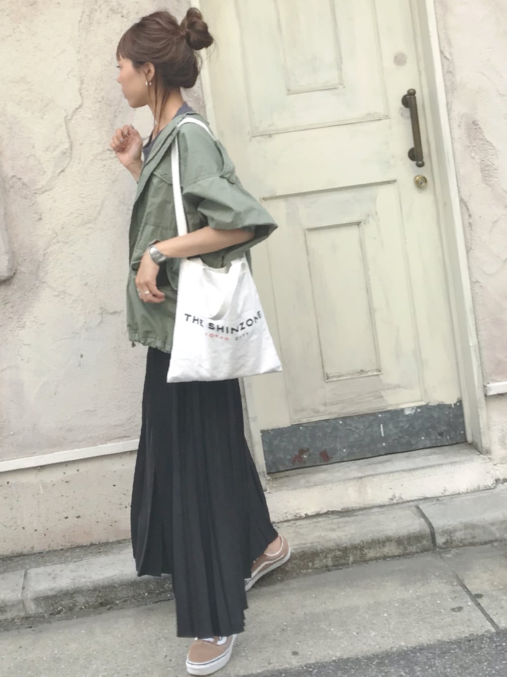 オーバーミリタリーにプリーツロングスカート ゆるく楽々♡ Instagram▶︎mailifemai