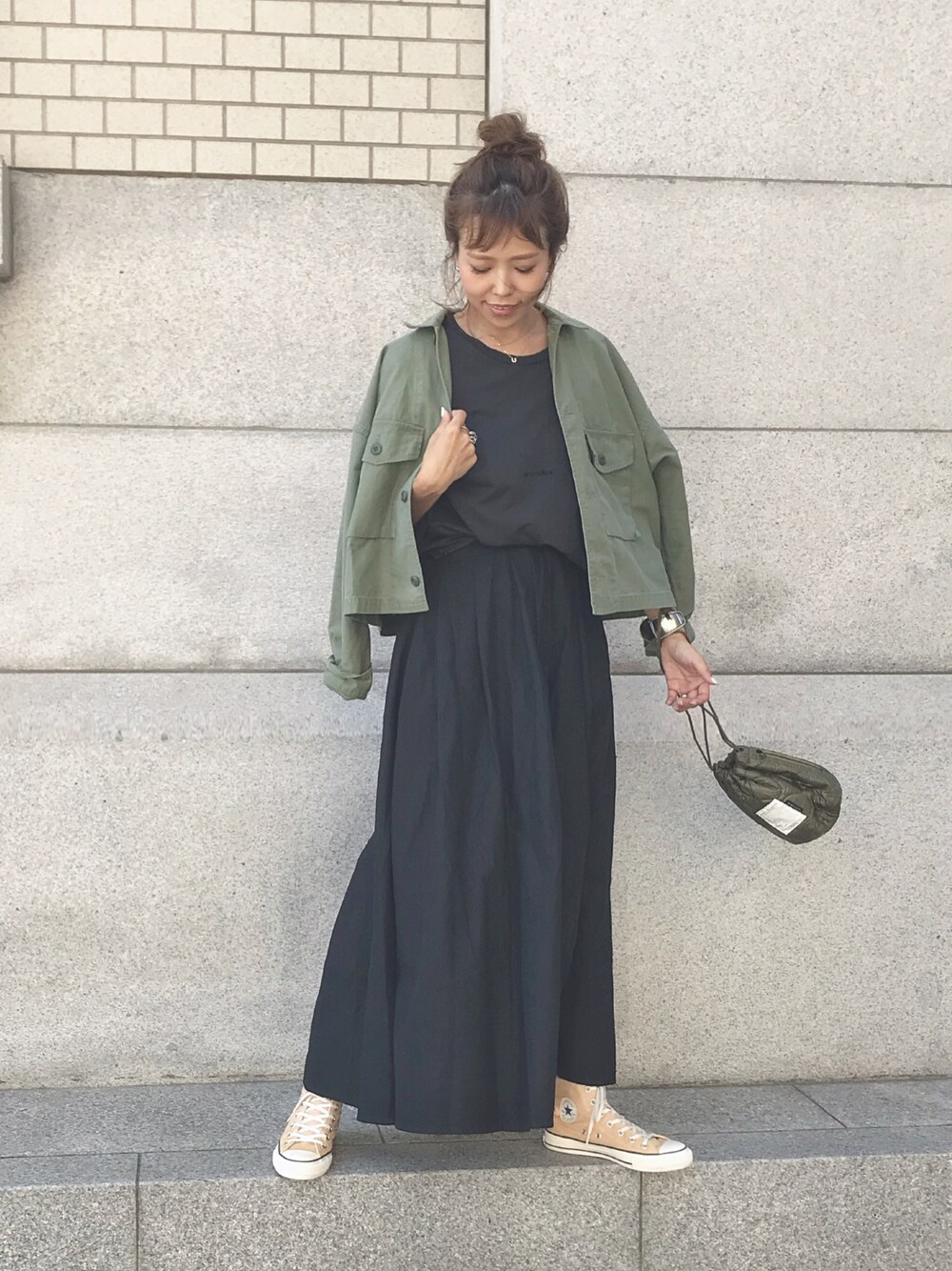 ブラックコーデにミリタリーぷらす お気に入りボリュームたっぷりスカート❤︎ Instagram▶︎mailifemai