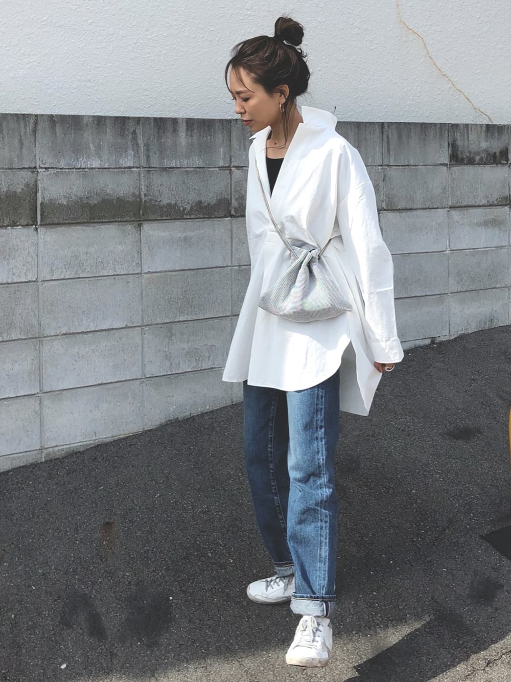 maiのシャツ/ブラウス「【Holiday】スキッパータックオーバーシャツ」を使ったコーディネート