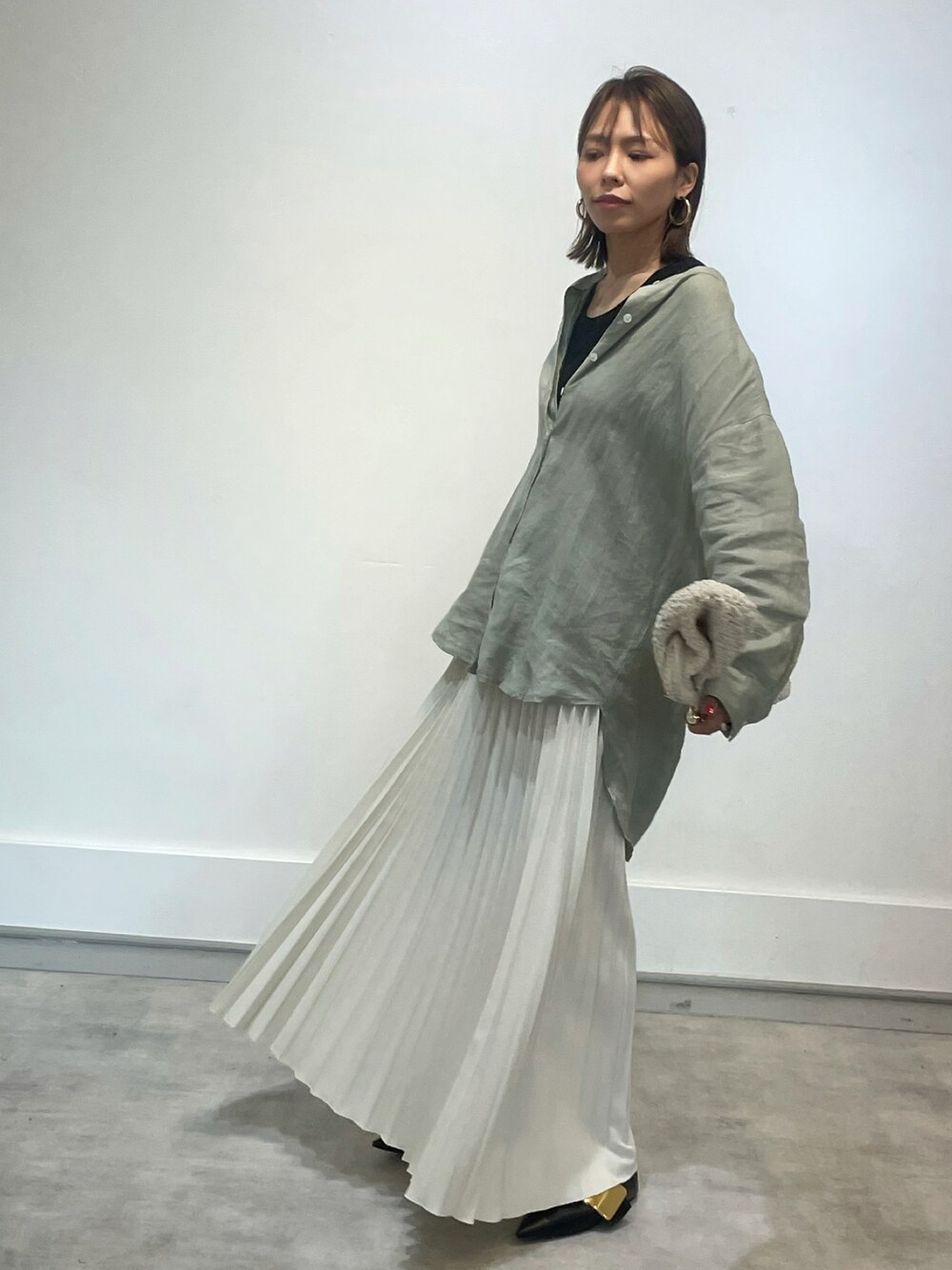 maiのシャツ/ブラウス「リネンバンドカラーロングシャツ」を使ったコーディネート