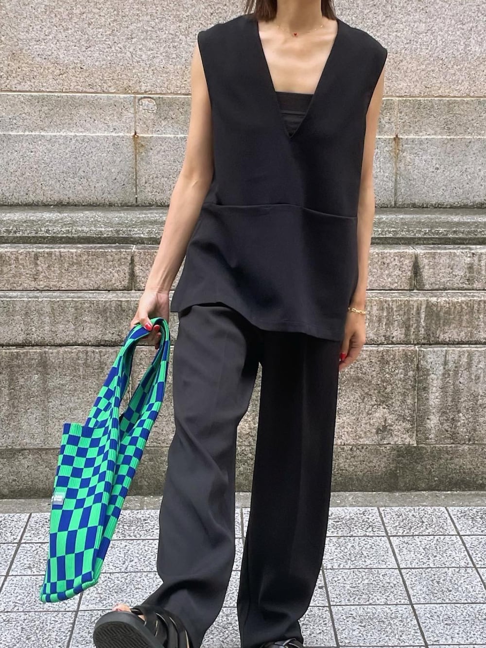 maiのトートバッグ「【LASTFRAME (ラストフレーム)】イチマツマーケットバッグ スモール/BLOCK MARKET BAG」を使ったコーディネート