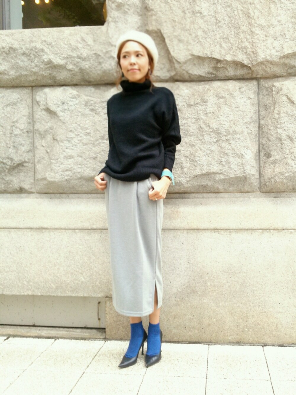 モノトーンコーデ ♡ 着心地軽いタートルニットに シルエット/丈感が可愛いタイトスカート 靴下×ヒールも ♡ ラメラメソックスカラバリ豊富に購入~ copo 3足1000円 ☺ かわいーよー ★instagram★ ↓ mailifemai