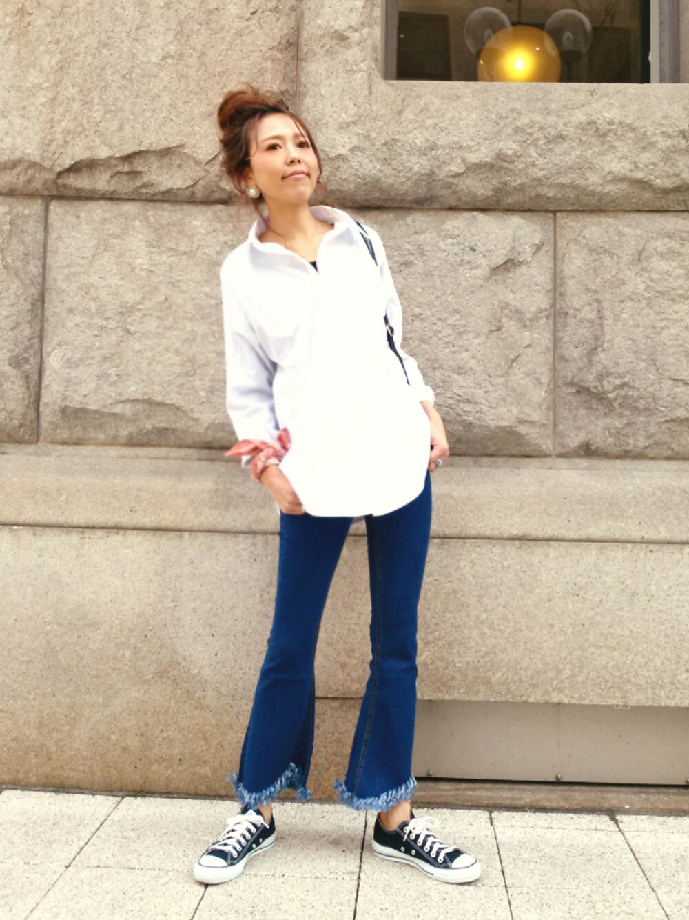 シャツにデニム simple. 反りながらの空を見上げ・・ おもしろい・・笑 ちょっとヒッピーな要素あるフリンジデニムパンツ・・ ストレッチがすんごくて履きやすい 👍 ★instagram ★ ↓ mailifemai