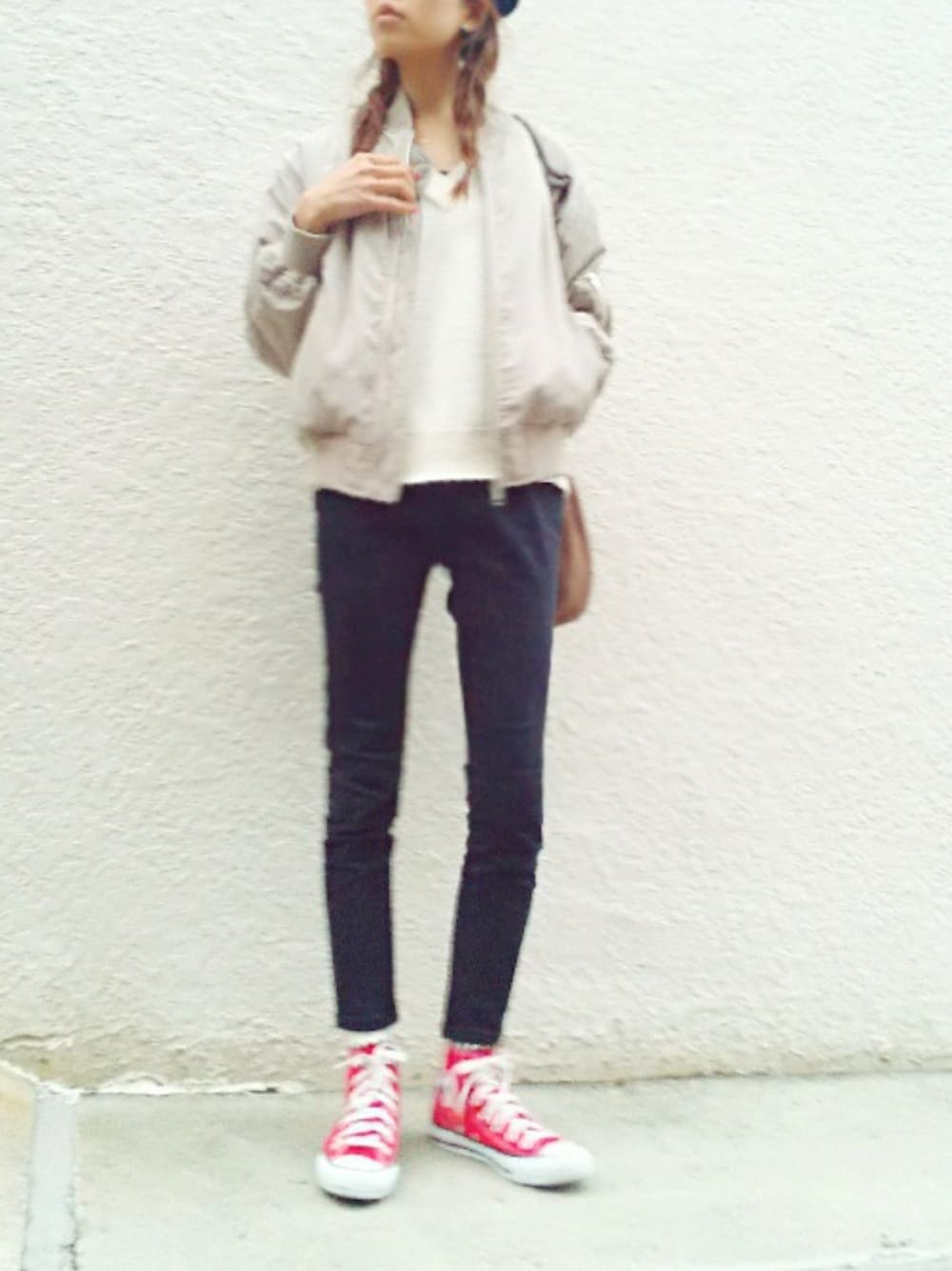 うすいろma-1 クシュクシュッと腕捲りしてパンツに スカートに暑くなるまでたくさん着る 👍😏♡ ★instagram★ ↓ mailifemai