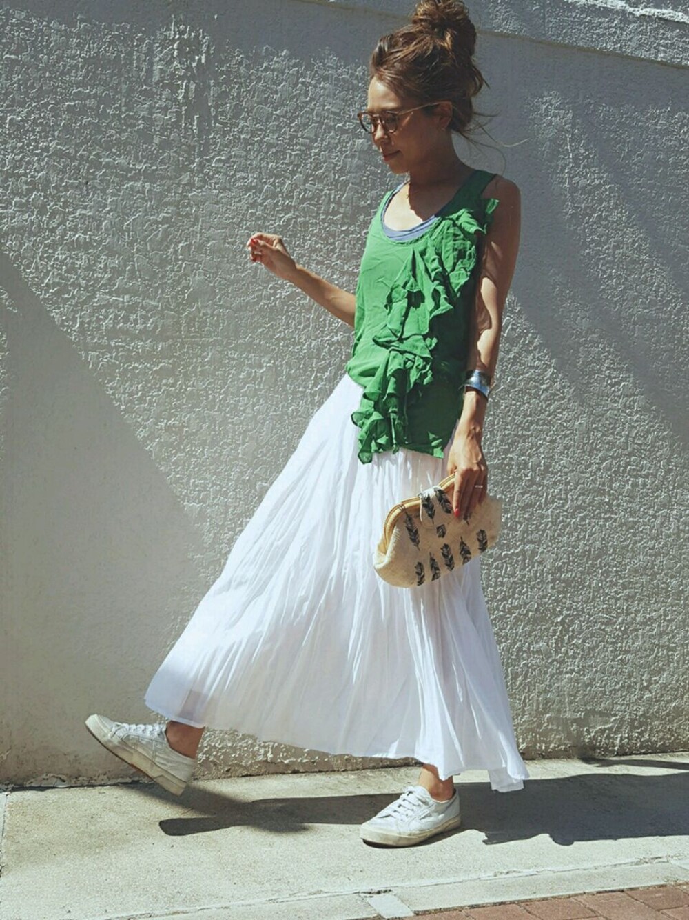 ゆらゆらロングスカートにゆるーいtops. 重ね着にもチラリ見えても可愛い着やすさ◎なタンクは一枚で着ても可愛い~♡. instaglam→mailifemai