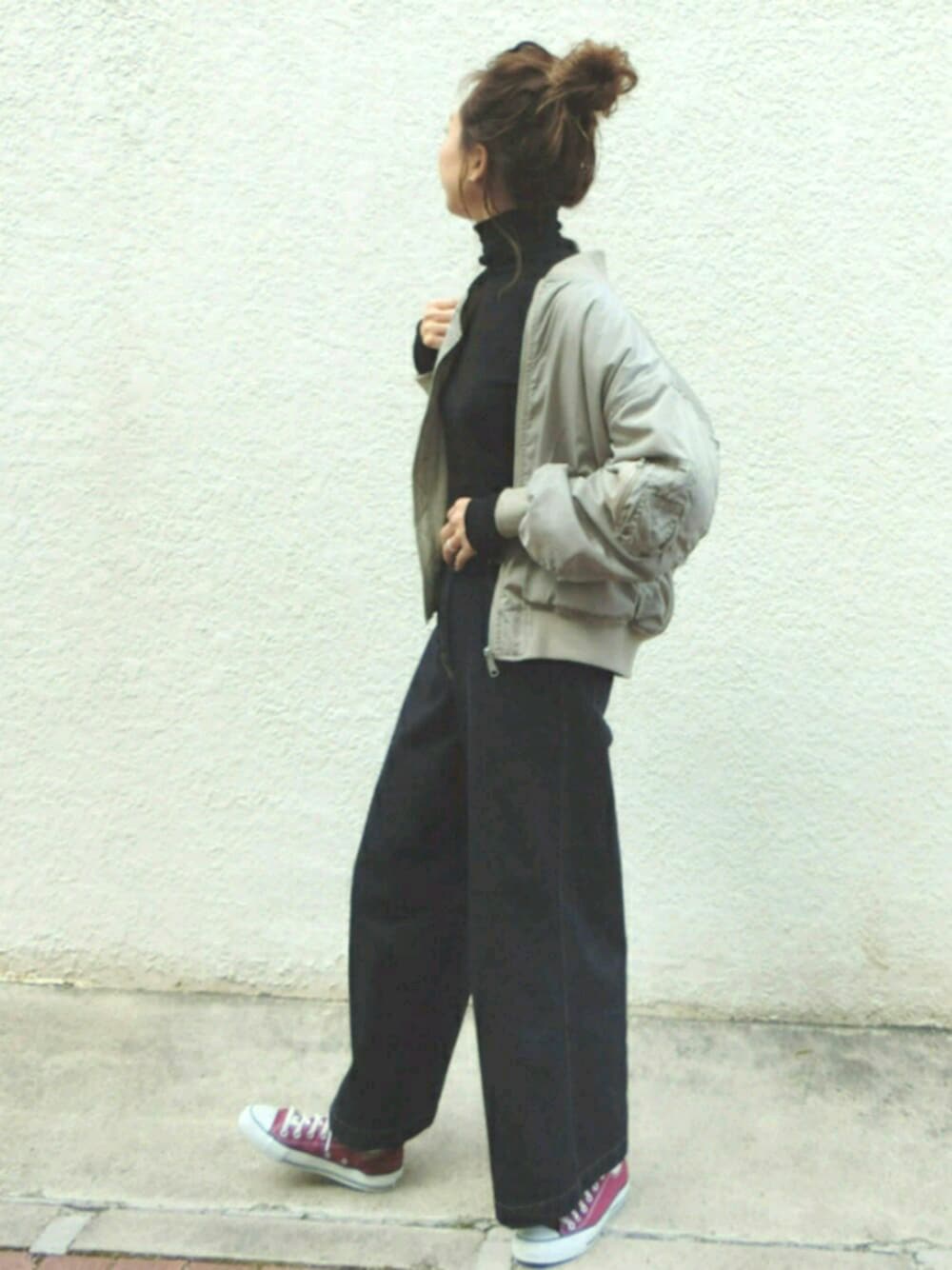 モノトーンコーデ タートルネック♡♡ 首を守る・・暖かさを再確認😆 ブラックでまとめたシンプルな組み合わせに ブルゾンは落ちぎみシルエットでルーズにゆるく羽織りました......🙈💕 instaglam⏩mailifemai