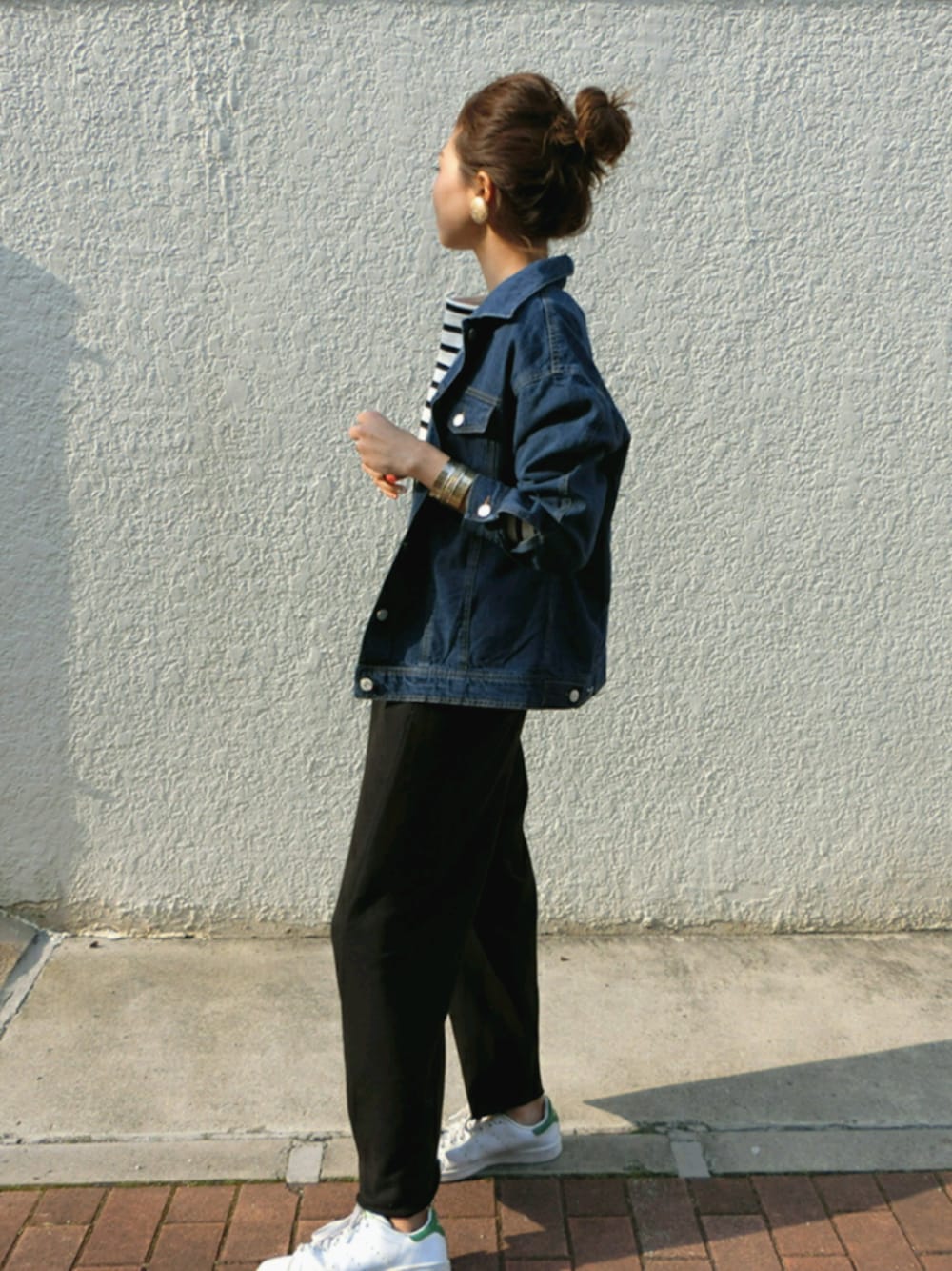ゆったりオーバーサイズが可愛い デニムジャケットを主役に♡ スウェットパンツにボーダートップスでシンプルカジュアル...♪ instaglam⏩mailifemai