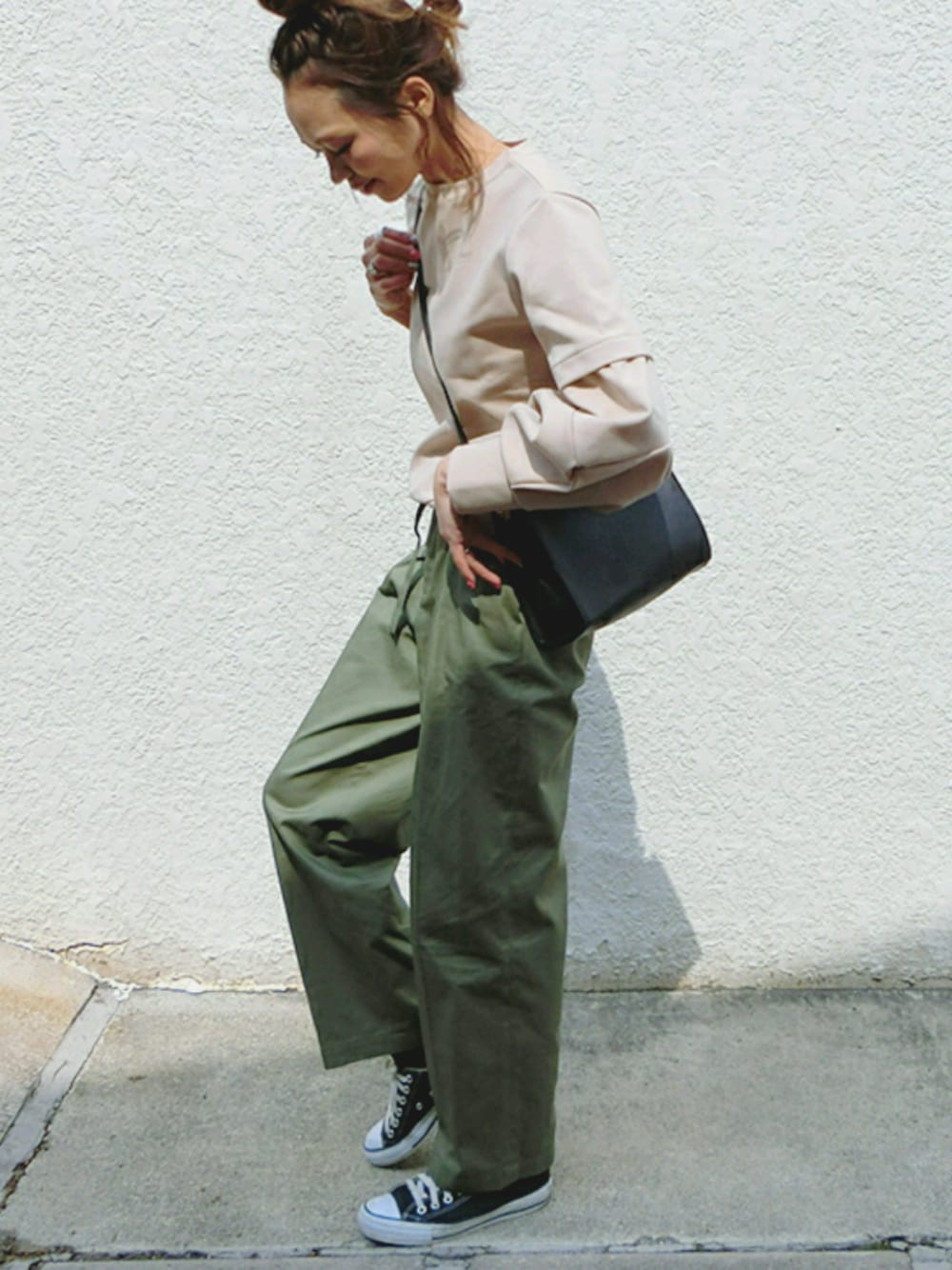 形が可愛い立派バルーン袖スウェット♡ カーキパンツに合わせてシンプルカジュアルコーデ. instaglam⏩mailifemai