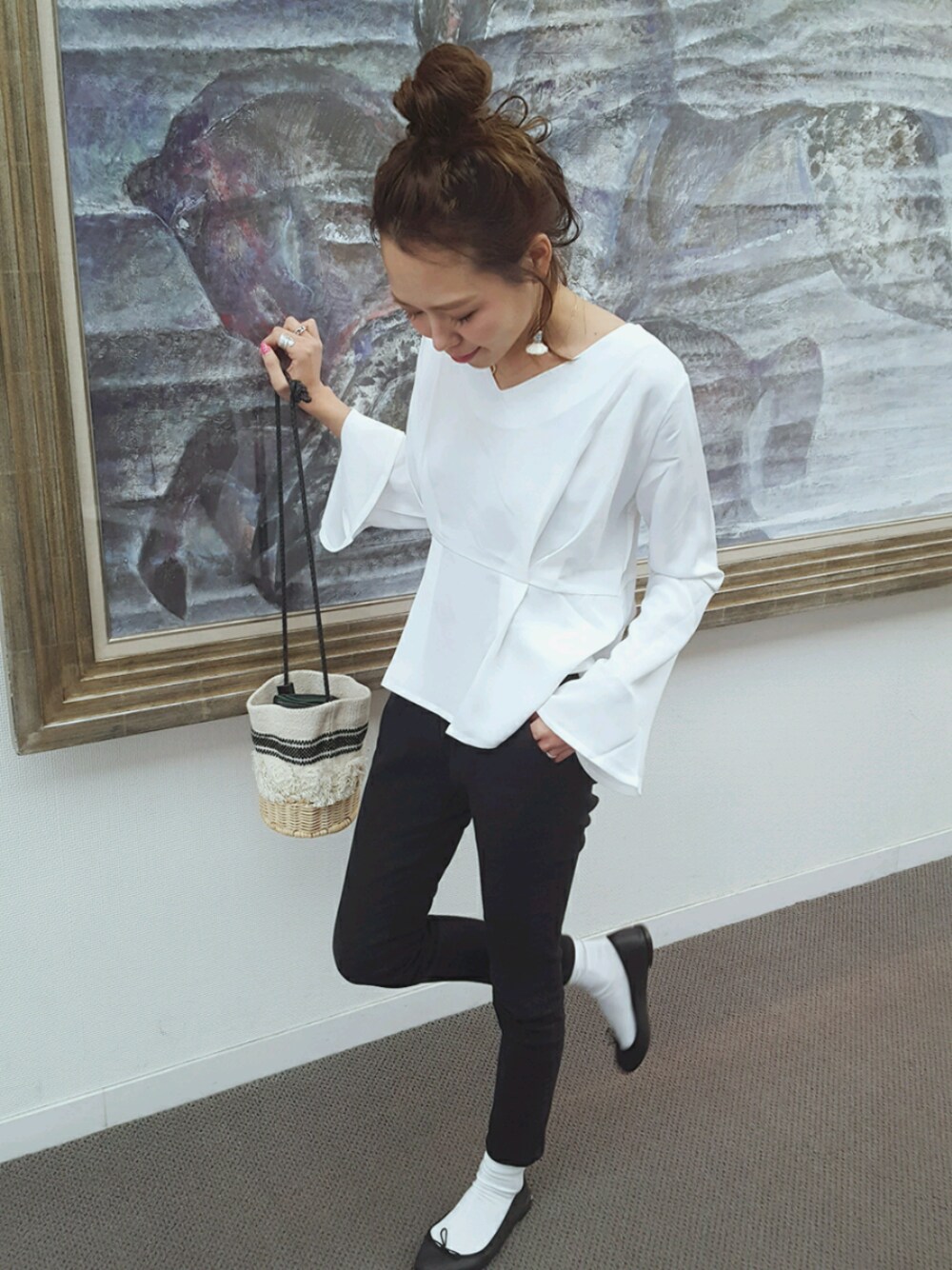 ユラユラ... テロテロ... レディーtopsをモノトーンに細身パンツに合わせてすっきりコーデで着てみました♪ instaglam⏩mailifemai