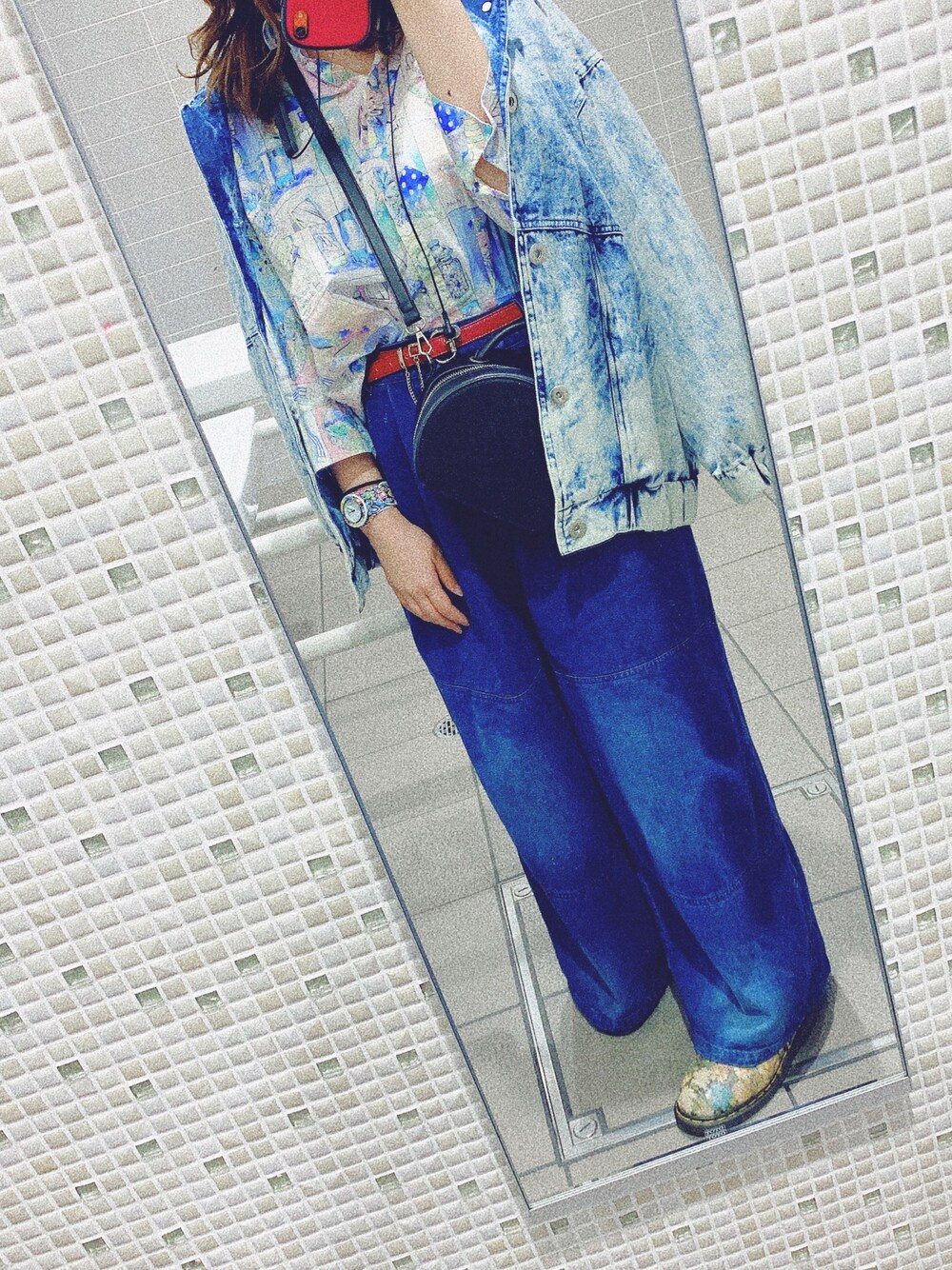 見ていただきありがとうございます💐 今日はあったかいからジャケット肩掛けぐらいがちょうどいい😌 持ち物柄シャツが薄手で袖も7分丈ぐらいのドルマンスリーブだから着心地最高❤︎ 柄がほんとかわいいから、手に取っていただいて柄までよくみていただきたい😂