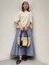 トップスはドルマンスリーブになっており、 柔らかい生地感なので着心地抜群です♪ 着丈もちょうどよく、 アウトスタイルでもすっきりと見せてくれます。 スカートは毎年人気のアイテムです。 ウエスト周りのシルエットがとても綺麗で、 裾になるにつれて程よいフレア感で すっきり見せてくれるのも嬉しいポイントです。 154cmで36サイズを着用していますが、 足首がしっかり見えるくらいの丈感でした。