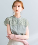 ROSSOの新作アイテム着てみました◎ ブラウスはレースがとても涼しげな印象にしてくれます。 程よくお袖も長さがあり安心です♪ すっきりとしたデザインなので、 インスタイルがオススメです♪