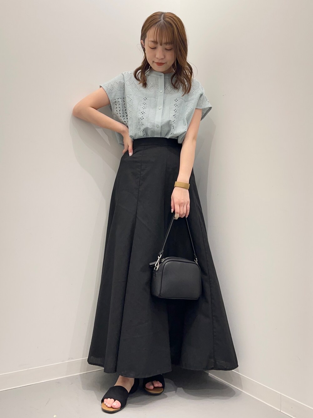 今日は綺麗めコーデ◎ バンドカラーシャツは、 フレンチスリーブで二の腕をすっきり見せてくれます! マーメイドスカートとあわせてすっきりコーデにしました。 スカートは長めに着たかったので38サイズを着用してます。
