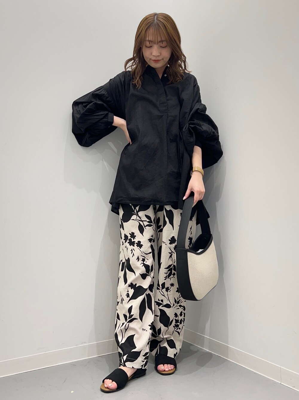 今日はブラックコーデ◎ コットンボイルシャツは、程よいシアー感で これからの時期ぴったりのアイテムです。 ゆったりしておりストレスフリーでご着用頂けます! ヒップが隠れるくらいの丈感で安心です♪