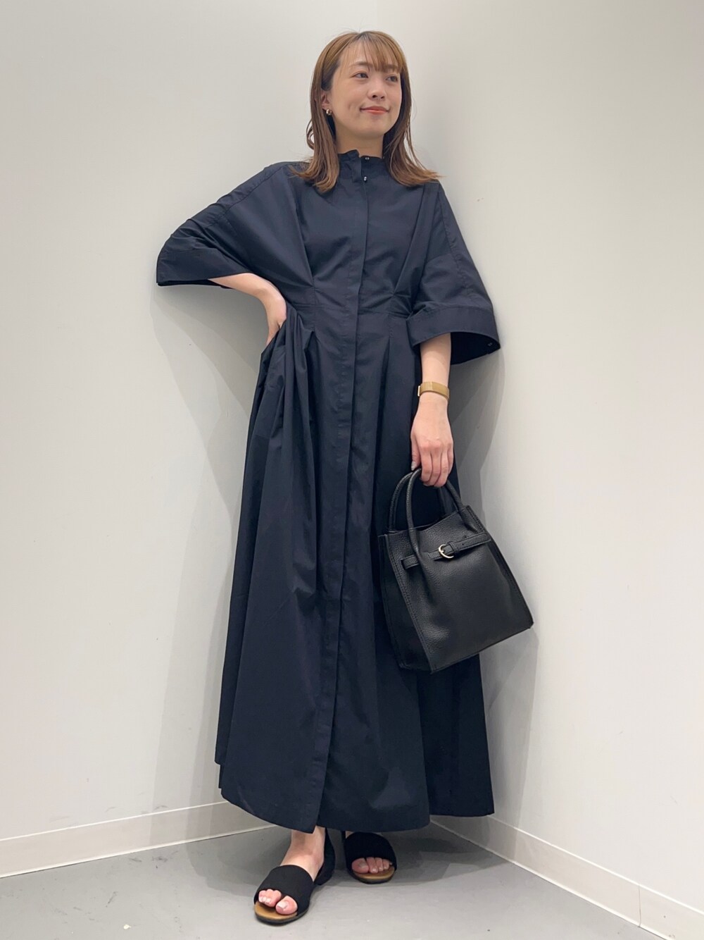 maiko(UR Store アミュプラザくまもと)のワンピース「フロントタックバンドカラーシャツワンピース」を使ったコーディネート