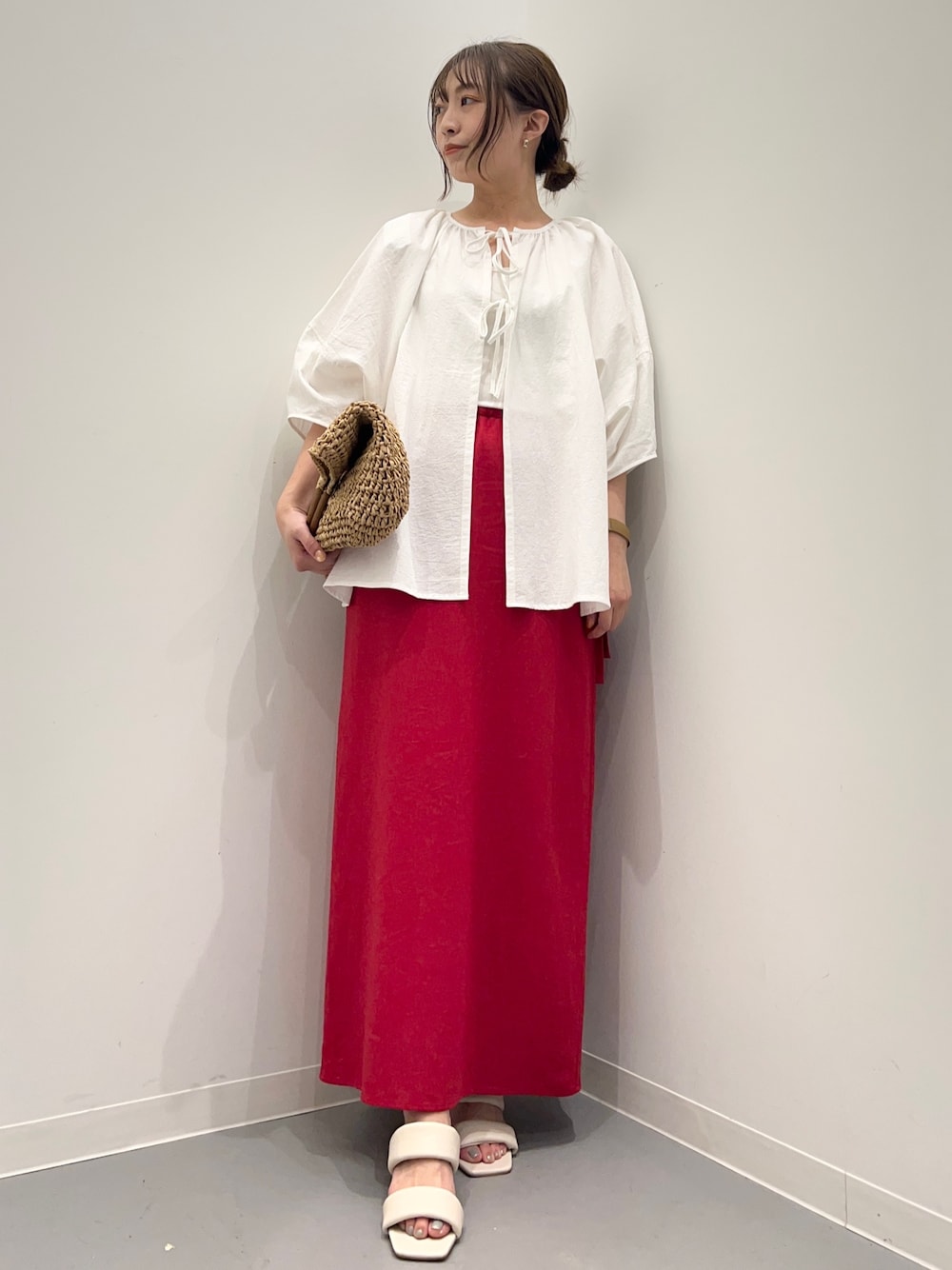 maiko(SENSE OF PLACE アミュプラザくまもと)のシャツ/ブラウス「前後2WAYボリュームブラウス」を使ったコーディネート