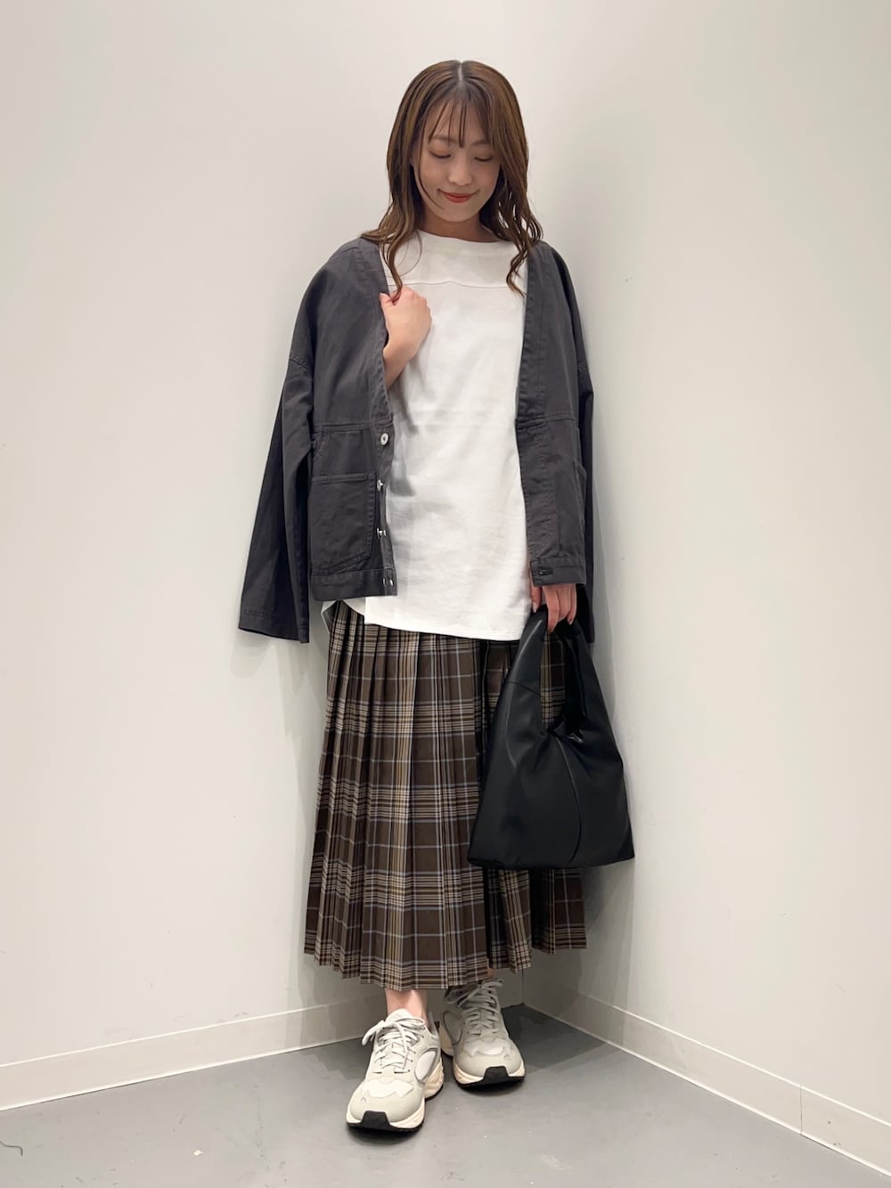 今日はカジュアルコーデ◎ 毎年人気のチェックプリーツスカート入荷しました◎ ウエストゴムでとても履き心地のよいアイテムです。 着丈も長すぎず低身長さんにもオススメです。 合わせたジャケットも新作です。 Vネックデザインですっきりとした印象にしてくれます。