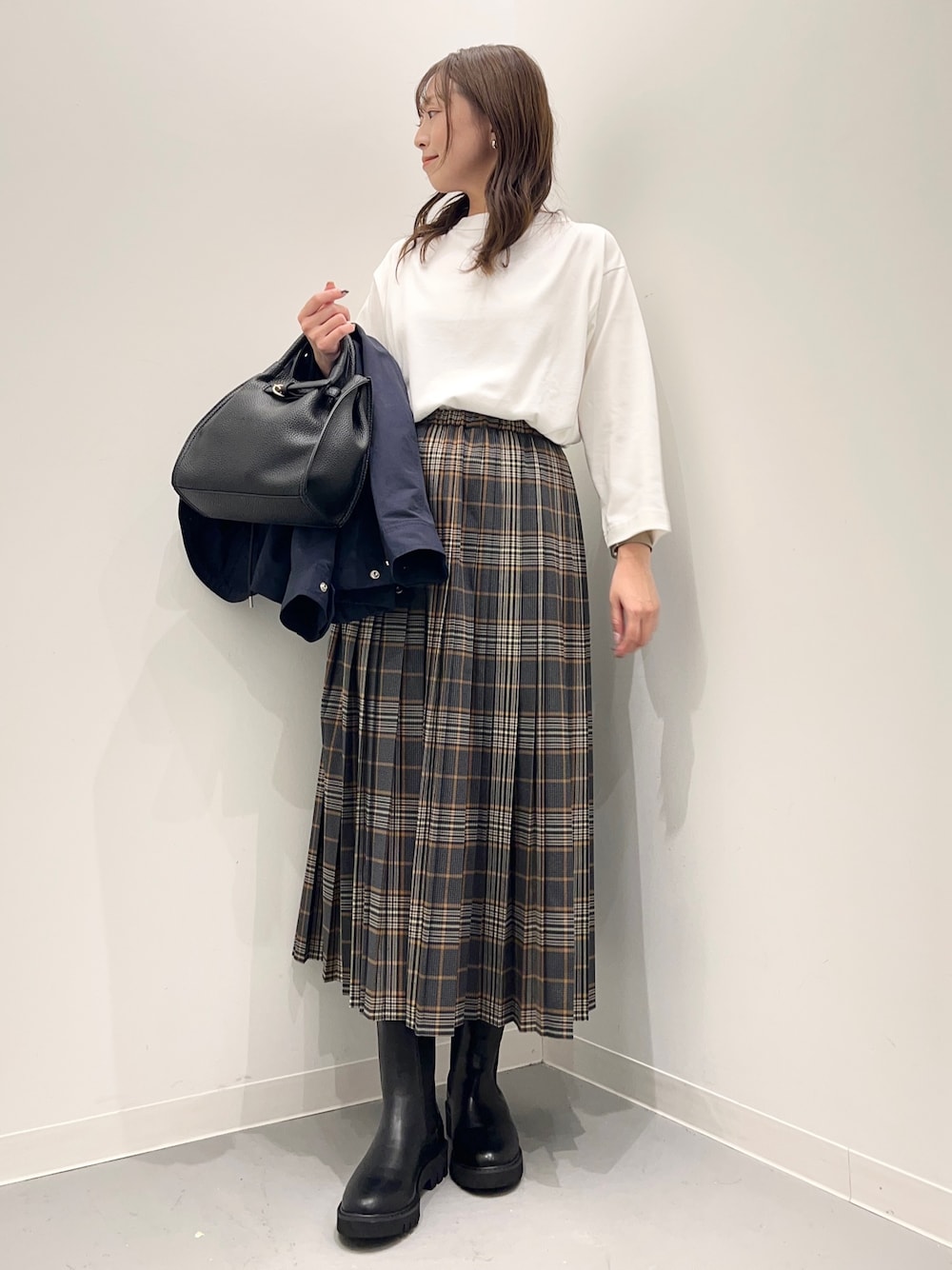 今日は綺麗めコーデ◎ 毎年人気のチェックプリーツスカートを使ったコーデです。 ウエスト総ゴムでとても楽に着用でき、 細かいプリーツで広がりすぎずすっきり着用できました。 マウンテンパーカーと合わせて少しカジュアルめなコーデにしました。 マウンテンパーカーは撥水加工も兼ね備えてあり 機能性もバッチリです。