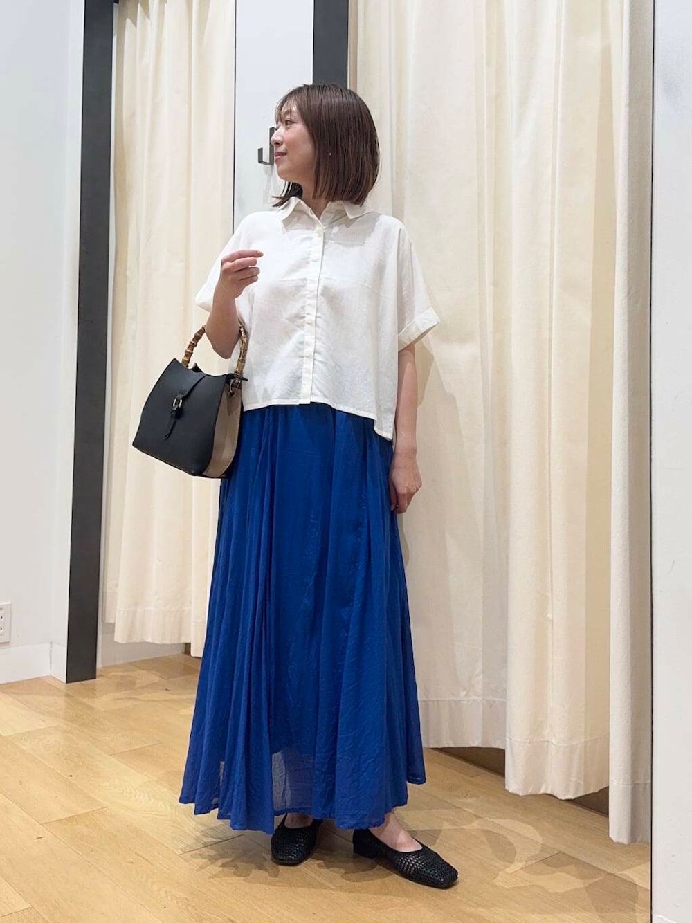 ご覧頂きありがとうございます^^ [ブラウス] 柔らかいコットン素材のブラウス◎ ショート丈ですっきり見せてくれます! シンプルなデザインで着回し抜群です。