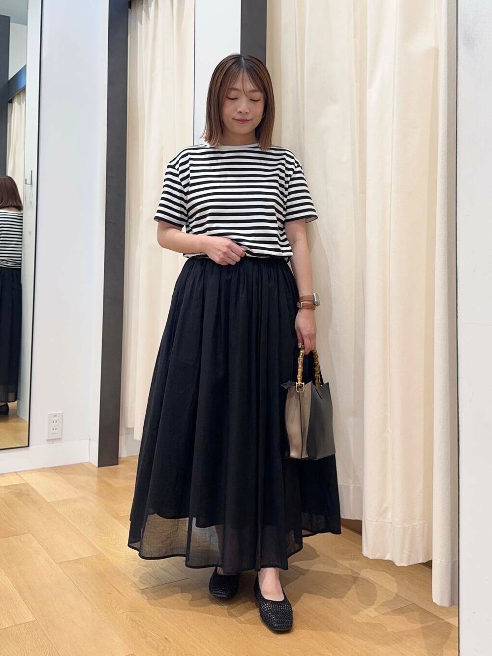 maiko(SENSE OF PLACE アミュプラザくまもと)のバレエシューズ「スクエアメッシュフラットシューズ」を使ったコーディネート