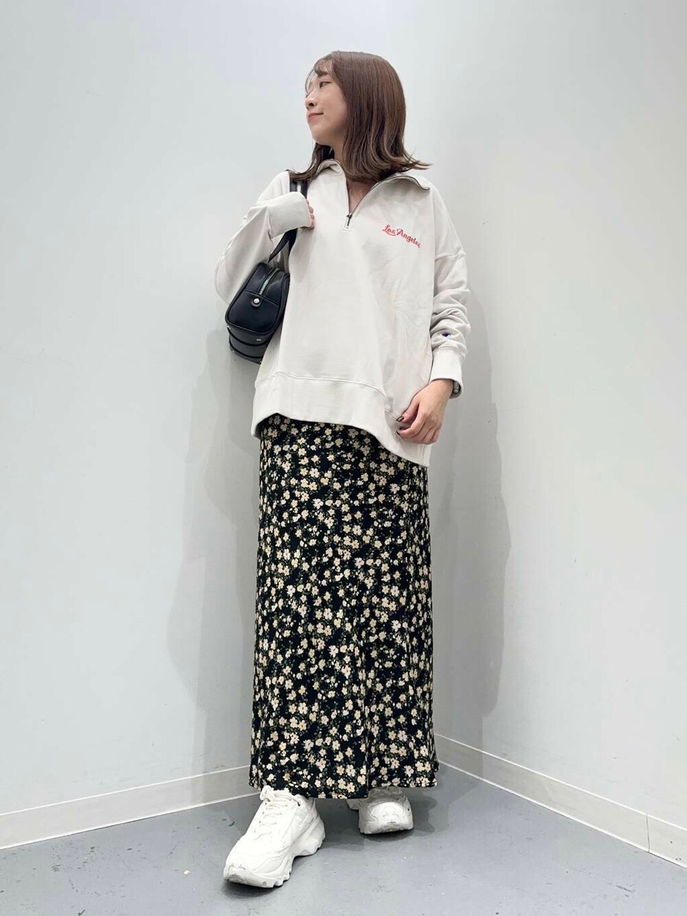 ご覧頂きありがとうございます^^ 別注のスウェット着てみました! ハーフジップでトレンド感があり、 後ろのロゴがとても可愛いアイテムです! 長すぎない着丈ですっきり着用できました!