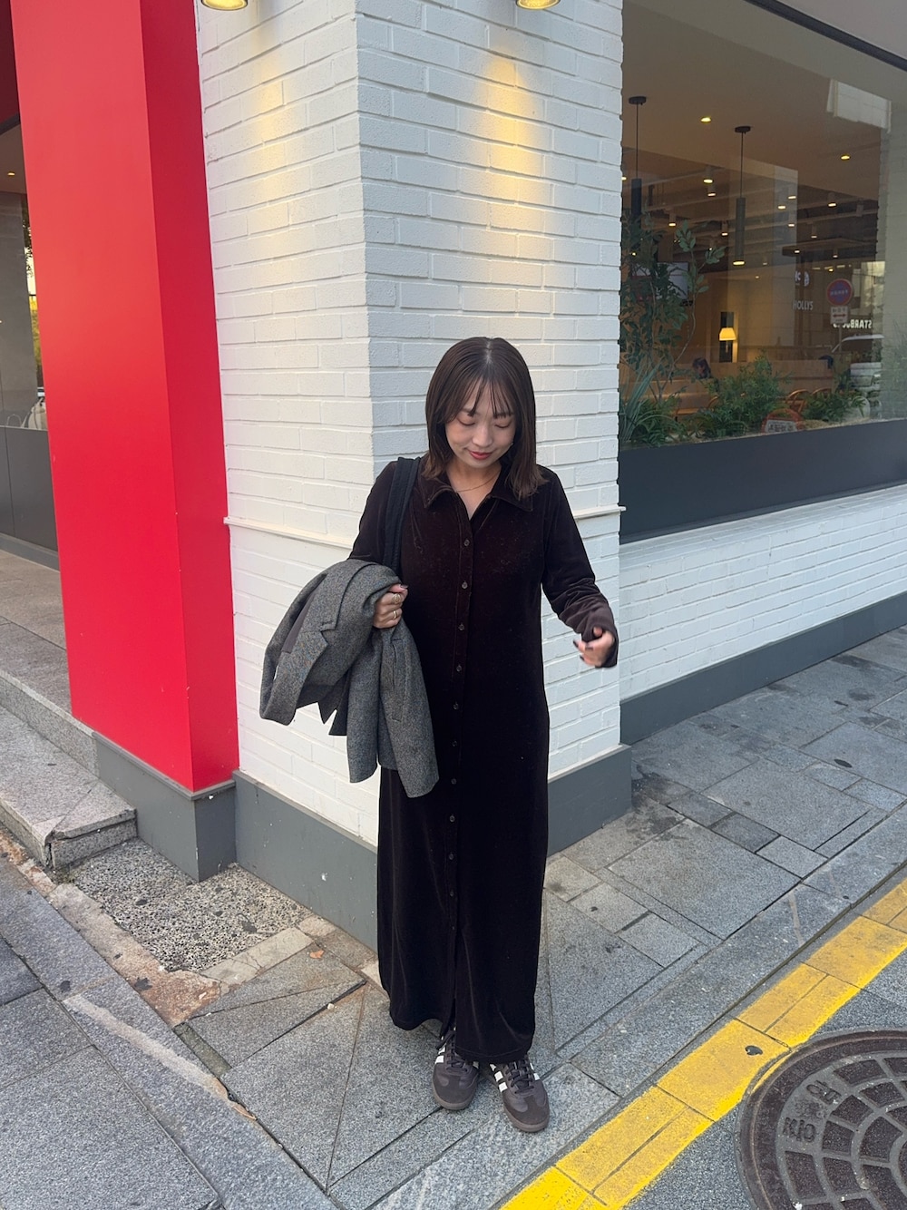 maiko(SENSE OF PLACE アミュプラザくまもと)のワンピース「ベロアシャツカラーワンピース」を使ったコーディネート