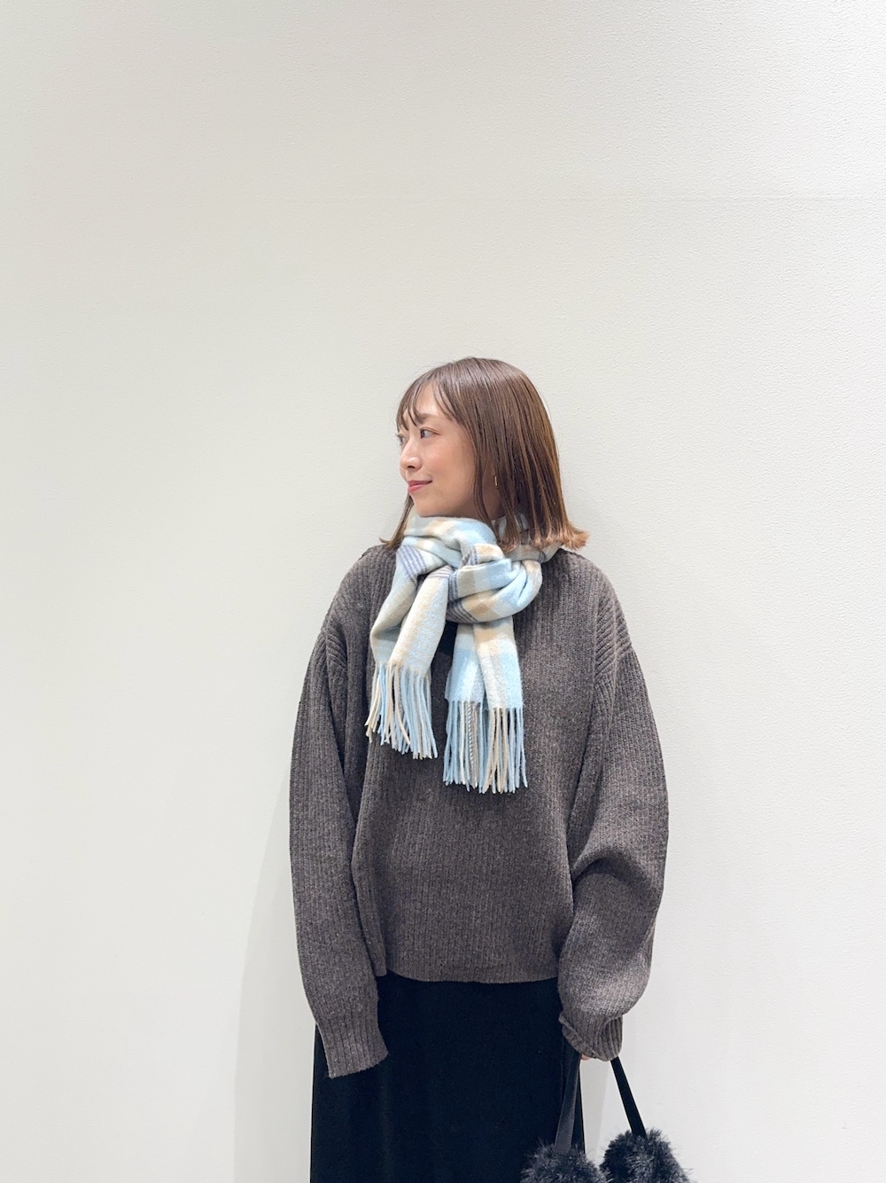 maiko(UR Store アミュプラザくまもと)のストール/ショール「ウールチェックストール」を使ったコーディネート