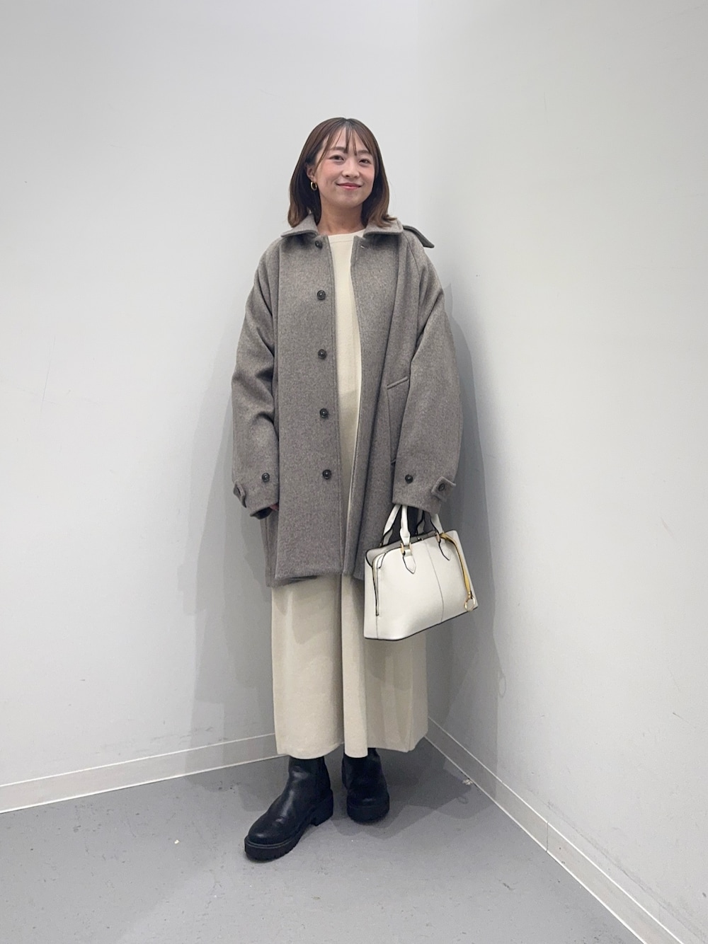 ご覧頂きありがとうございます^^ ニットワンピースはスウェットのような素材で きれいめになりすぎず使いやすいアイテムです。 154cmで足首くらいの着丈でした! アウターはとても軽く、 ゆったりしており羽織心地抜群でした。 腰回りをしっかりカバーしてくれる着丈で 暖かく着用できました!