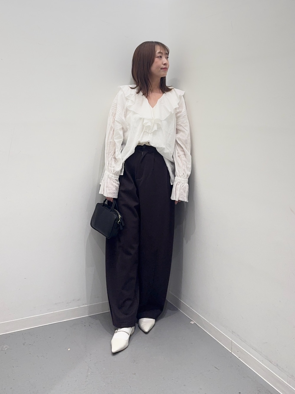 maiko(UR Store アミュプラザくまもと)のシャツ/ブラウス「『一部WEB限定カラー』コットンボイルラッフルブラウス」を使ったコーディネート