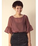 maiのトップス「【A/W】袖フリルストライプブラウス」を使ったコーディネート