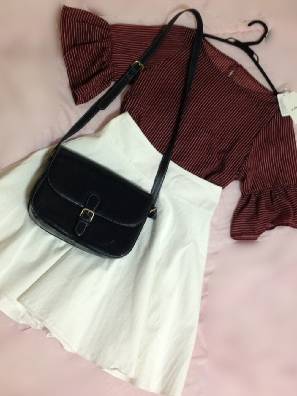 ちょっと秋先取りコーデ(*^^*)♡ ボルドーのストライプトップスは晩夏商品♡