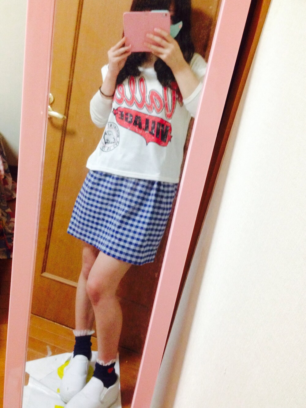 Tシャツの下にロンTを着てレイヤード風に*\(^o^)/* 靴下はフリルがついていて、サイドには ポイントのハートがついています ♡